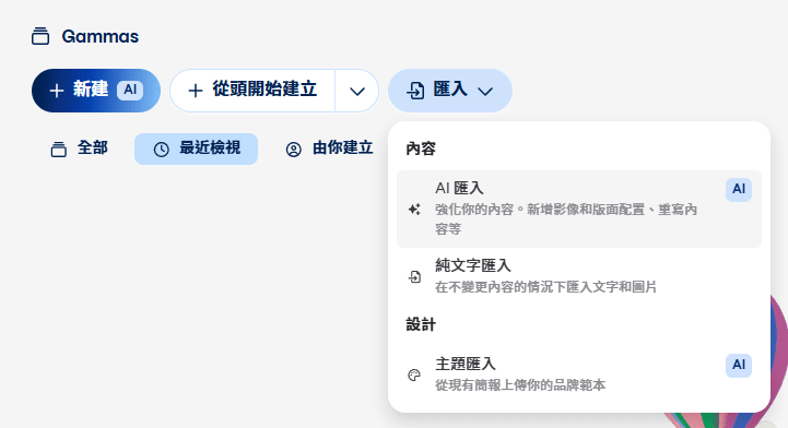 4.使用Gamma,匯入→選擇AI匯入→上傳剛剛的Word→生成簡報內容