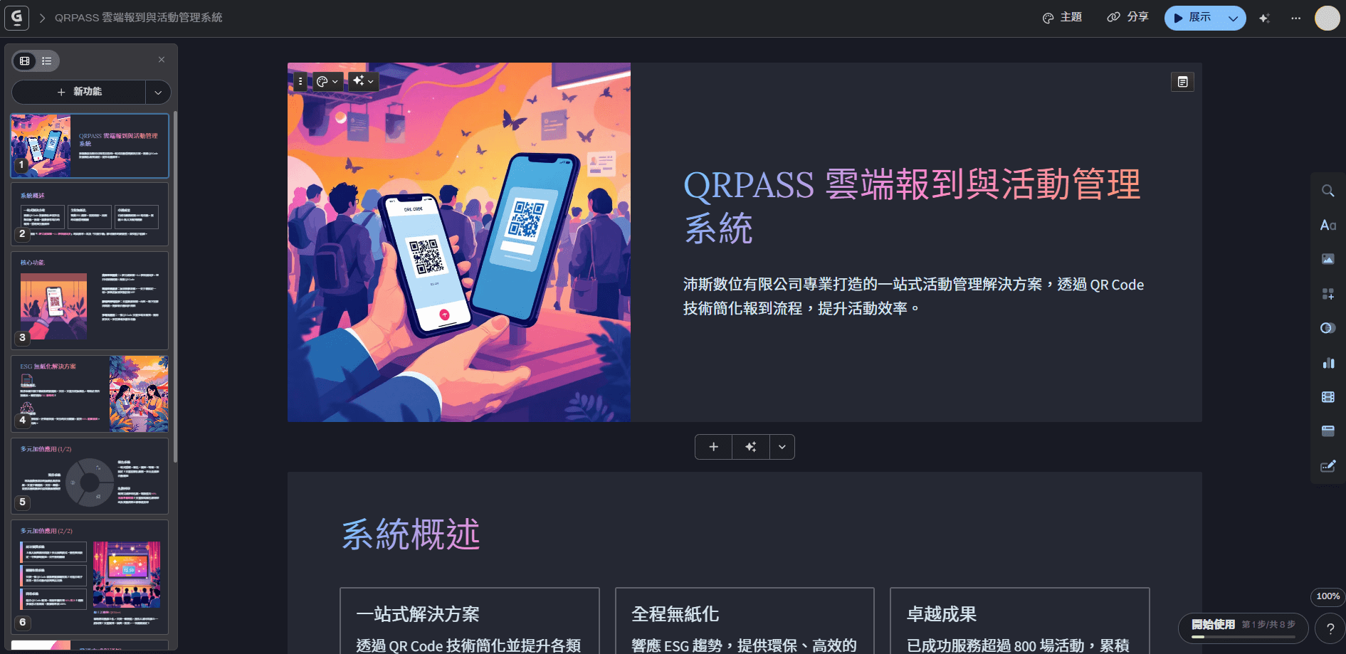 - 強調設計美感與視覺效果的簡報:提供多種設計模板與豐富視覺呈現,適合行銷提案、產品展示等視覺需求強的專案。