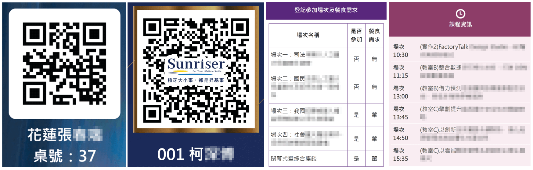 系統能設定代碼,自動代入參加者姓名、座位號碼、場次資訊等等,讓每個人都能取得自己的活動資訊,方便現場報到後直接入場,省去帶位、現場詢問的人事成本。