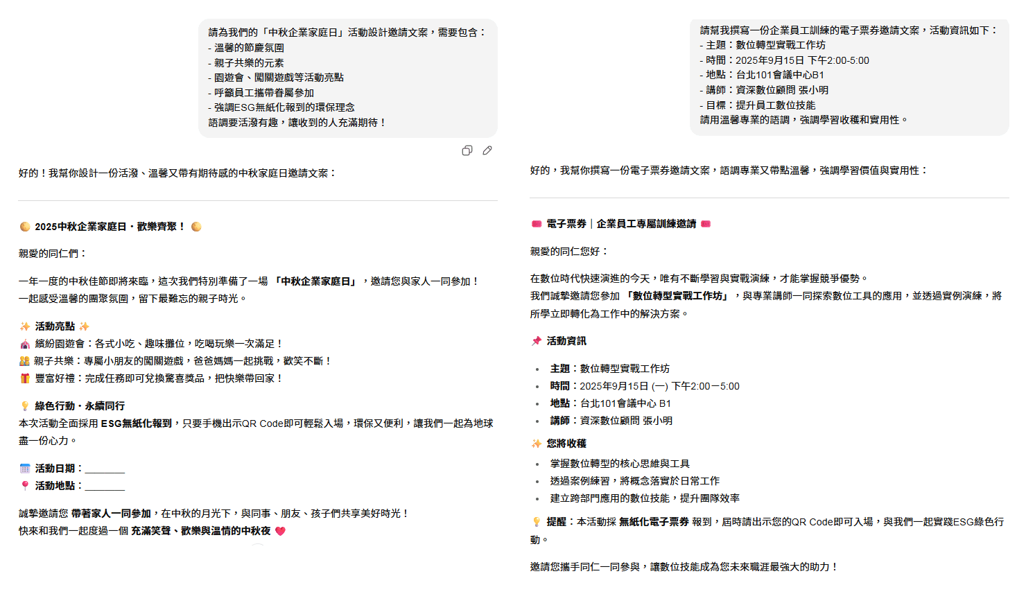 提示詞範例1:基礎活動邀請