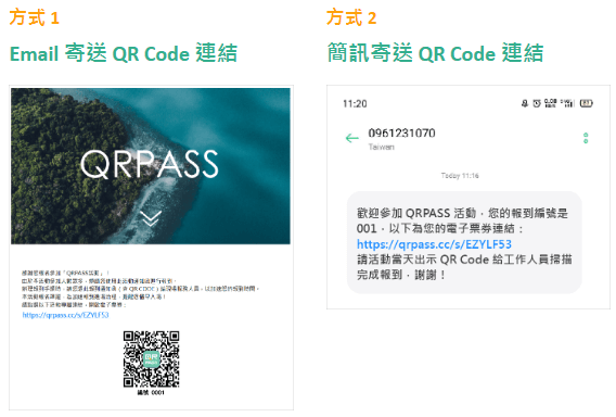 可以透過郵件Email或簡訊將電子票券的連結發送給參加者(活動前收到)。