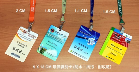 標準活動識別證大小約A6或信用卡尺寸,方便掛在脖子或夾在衣服上。