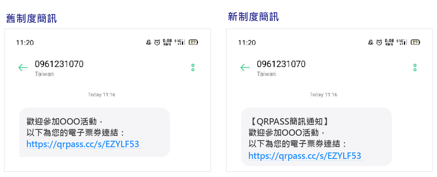 新制度簡訊會在第一段加上【QRPASS簡訊通知】字樣。